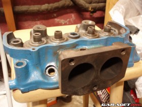 Der geht hin und schweißt ein neu gemachtes Teil ( Foto ) in den Zylinderkopf um den beim V4 einen Auslaß auf zwei zu machen