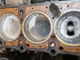 Zumal alle Kolben am Einlass massive Schäden haben. Lustiger Weise hörte man bei den Startversuchen absolut keine bösen Geräusche, daher hatte ich die letzten Wochen auch erstmal nur so Kram wie Steuerzeiten, Verteiler, Stauscheibe im Verdacht.