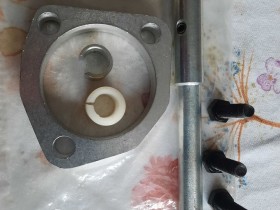 Das weiße Kunsstoffteil kann man nun so zurecht sägen und feilen, damit man es zwischen der Gummifeder und der Antivibrationsbuchse einsetzen kann, damit die Feder wieder die richtige Vorspannung für die Rw-Sperre hat.