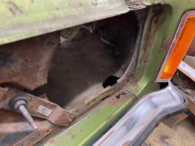 Der Kotflügel war schnell abgebaut. Bis auf untenrum ist der ziemlich gut noch