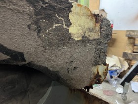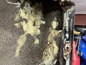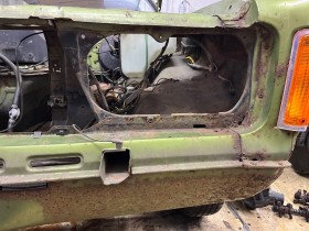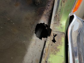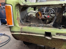 Heute gings weiter. Scheinwerfer ausgebaut. Dahinter natürlich das erste größere Loch entdeckt.