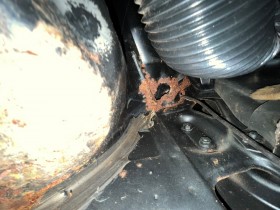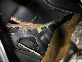 Weil von innen wie erwartet alles voll mit Hohlraumversieglung gespritzt wurde. Dafür wurden extra Löcher mit Stopfen am Seitenteil gebohrt welche ich leider vergessen habe zu fotografieren.