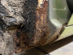 Der ist halt irgendwie "anders" gammelig. Abfucken tun die beiden Ecken unterm Spritzkasten. Da muss ich ja nun schön alles von Innen zerlegen und von aussen aufmachen um an die Stellen zu kommen