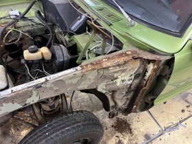 Kotflügel links nun auch demontiert. Zustand ähnlch wie rechts.