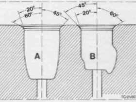 Hier mal die Angaben aus dem WHB zu den Winkeln. Da die Sitzfläche ja möglichst weit außen am Ventil sitzen soll, um den maximalen Ventildurchmesser auszunutzen, ist der Sitz-Aussendurchmesser praktisch gleich dem Ventilaussendurchmesser. Meist wird dabei so gearbeitet, daß die Überhöhung Null beträgt, meiner Erfahrung nach verschenkt das minimal Leistung durch den tiefen Sitz.