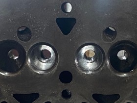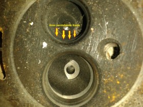 Am Einlass ist in diesem Fall die Kante sogar noch breiter, bewirkt aber einen Sprung zu größerem Kanalduchmesser ... nicht ganz so schlimm, sollte aber natürlich genauso nachgearbeitet werden! Hinterher den Kopf auf Planizität prüfen, ggf planen ...