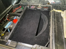 In der zweiten Ebene des Kofferraums wunderschönen Teppichboden verlegt - dass das Bordwerkzeug das hier seinen Platz bekommt nicht klappert