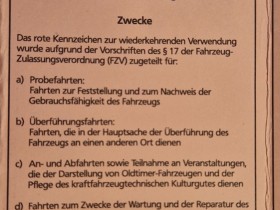 Beschreibung erlaubter Fahrten (Probe-Überführung-Oldtimerveranstaltungen-TÜV-Werkstatt)