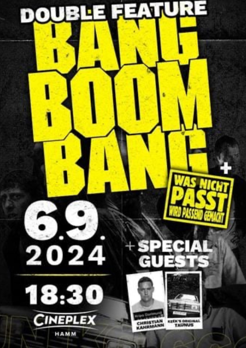 Leider bin ich noch auf Arbeit und das Navigationsgerät zeigt verstopfte Straßen. Ich werde es nicht schaffen heute um 18.30 im Cineplex in Hamm auf der Bang Boom Bang Jubiläumsparty aufzutauchen. Wenn jemand möchte, kann er meine 2 Tickets für Lau bekommen. :crying Reihe O Platz 10 und 11 PN