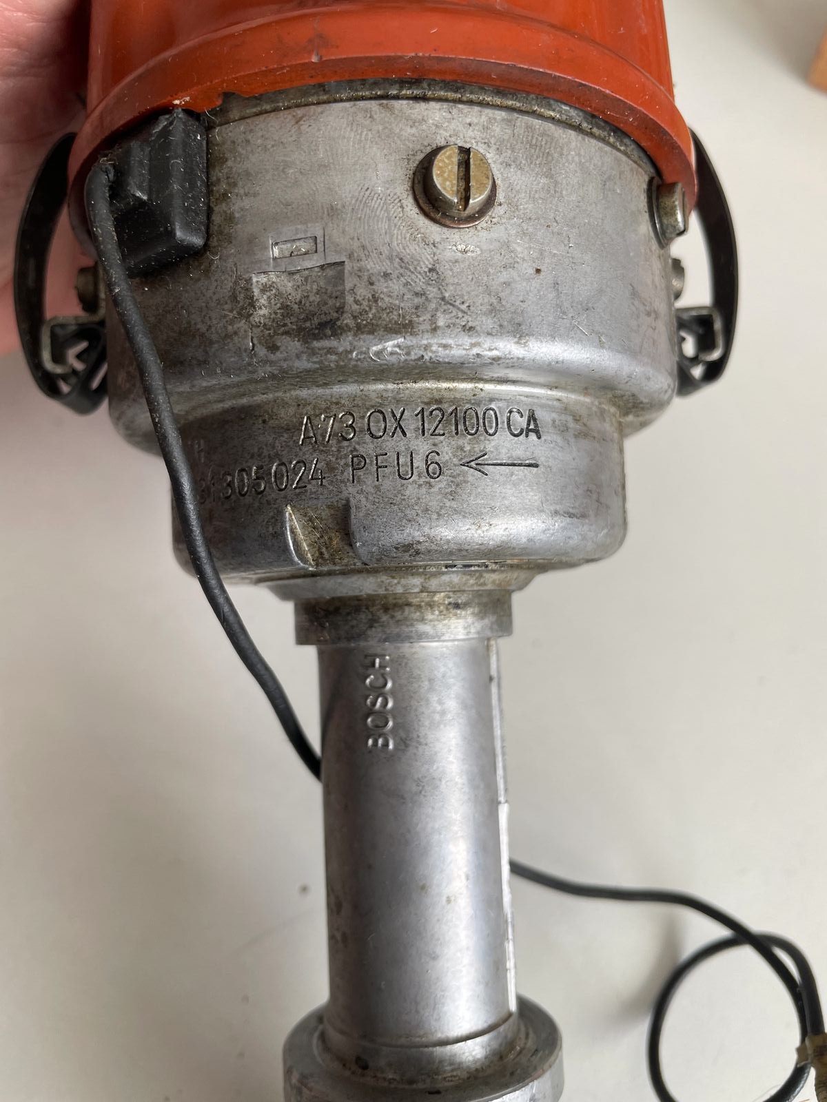 29. September 2024 #1 Der da: Thema Zündverteiler BOSCH welches Modell? Vielleicht weiß hier einer weiter:In den Tiefen meines Kellers kam beim Ausmisten ein BOSCH Zündverteiler raus.Nummern:a73ox12100ca0231305024 PFU6Das Internet hilft nicht weiter, die BOSCH-Seite ist scheiße.Für welche Karre ist das Teil? Lord Vetinari 15. September 2024 Durchmesser Verteilerkappe 90 mm.50 inkl Versand