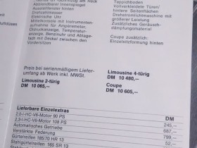 für 245,- DM Aufpreis gab es auch den 2,0-V6, für 687,- DM sogar den 2,3 (1973)