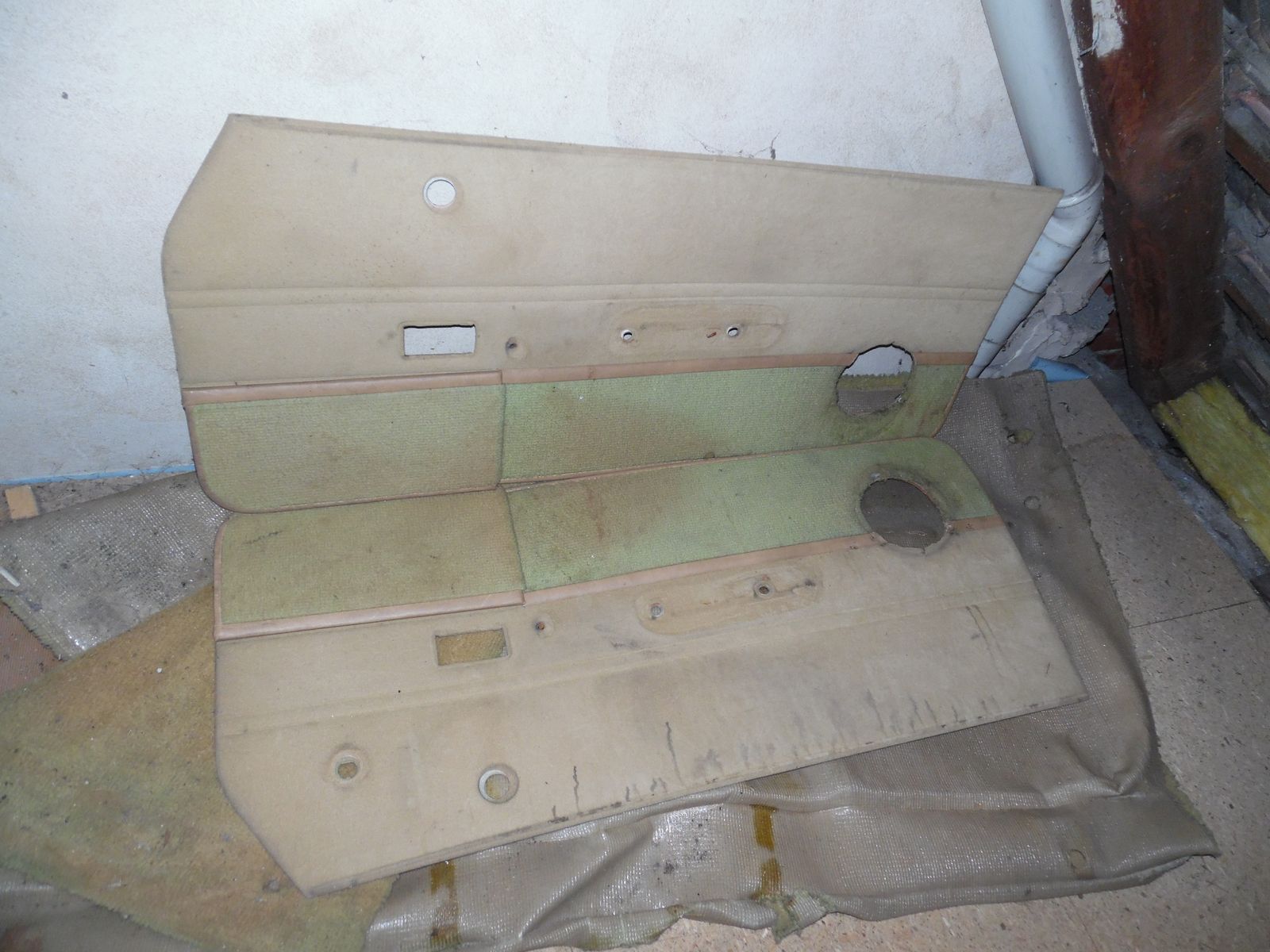 Zwei beige Hochflorteppiche Ghia und GXL, beide natürlich verfärbt aber heile, müßten auch jeweils aus 2TL stammen wobei das ja recht egal sein dürfte.