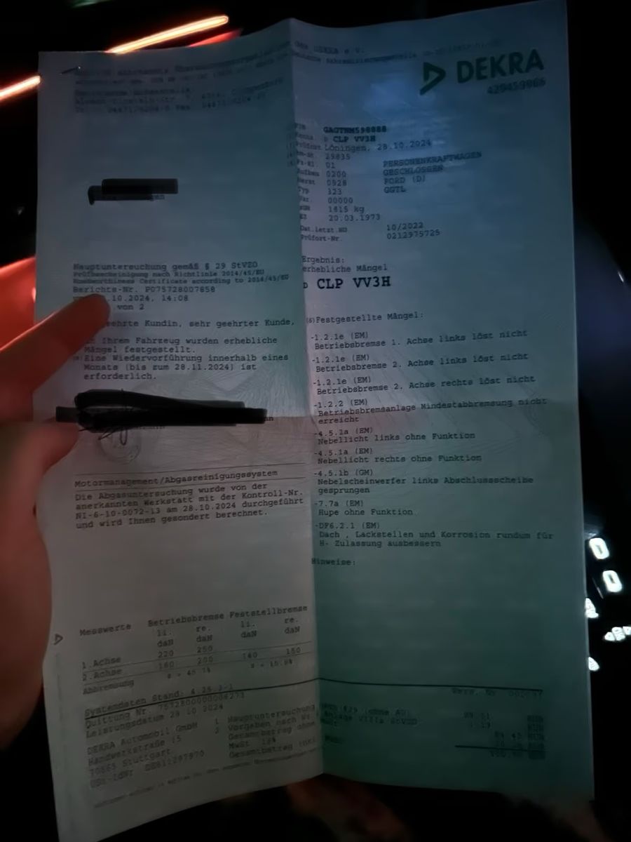 Zur Sicherheit hat er sich schonmal für den nächsten Besitzer einen Mängelbericht von der Dekra geholt. Na klar