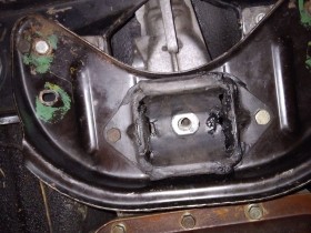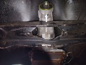 Am getriebe hab ich dann geflext an den Halterungen die für mich für den jetzigen Einbau nicht notwendig sind. So hängt das getriebe in der original Aufnahme in der original Verschraubung auf meine original traverse.