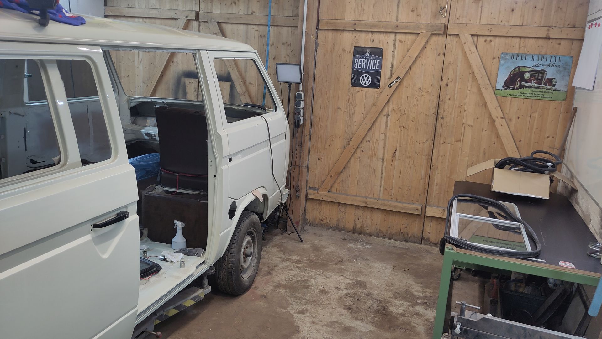 • Ich habe hier ja grade eine leere neu lackierte T3 Karosse stehen und daneben liegt der ausgebaute 2,8i vom Taunus rum.