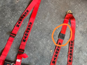 • Muss leider noch mal fragen, ich habe zwei unterschiedlich aussehende Gurte (Bild zeigt ein Beispiel) das "Teil" welches eingekreist ist, ist nur an einem vorhanden wie auch auf dem Bild. Ist das nun der linke, also der für den Fahrer oder wie erkenne ich welcher für links und für rechts ist?
