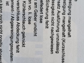 Alles schon probiert, war schon 3 mal da. Die lassen sich auf nix ein. Habe ja viele Sachen die eingetragen werden müssen. Motor, getriebe, Achsen usw. Hier die Mängelliste von dem ersten Besuch. Viele Mängel waren mir aber im Vorfeld klar das die kommen, wollte aber eine Liste zum abarbeiten. Heute bei der Nachuntersuchung bin ich an der Warnblinker gescheitert, habe es vorher bestimmt nicht geprüft.
