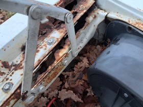 Um es präziser zu formulieren, gesucht wird, das Blech, in gut, das in Form eines Dreiecks, das Scharnier zum Längsträger hin abstützt