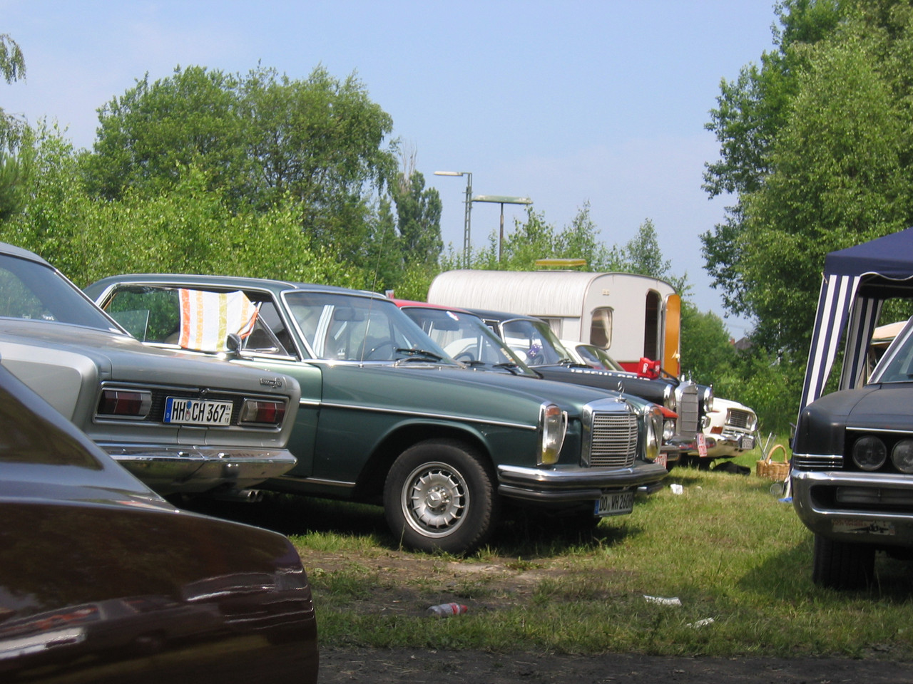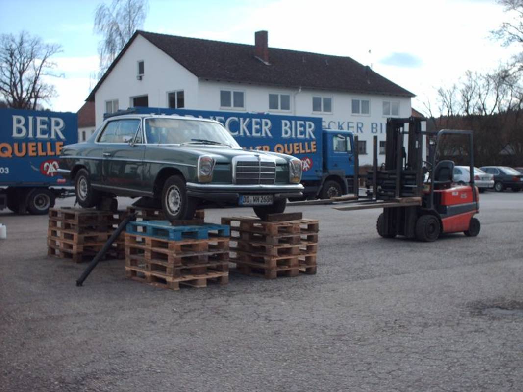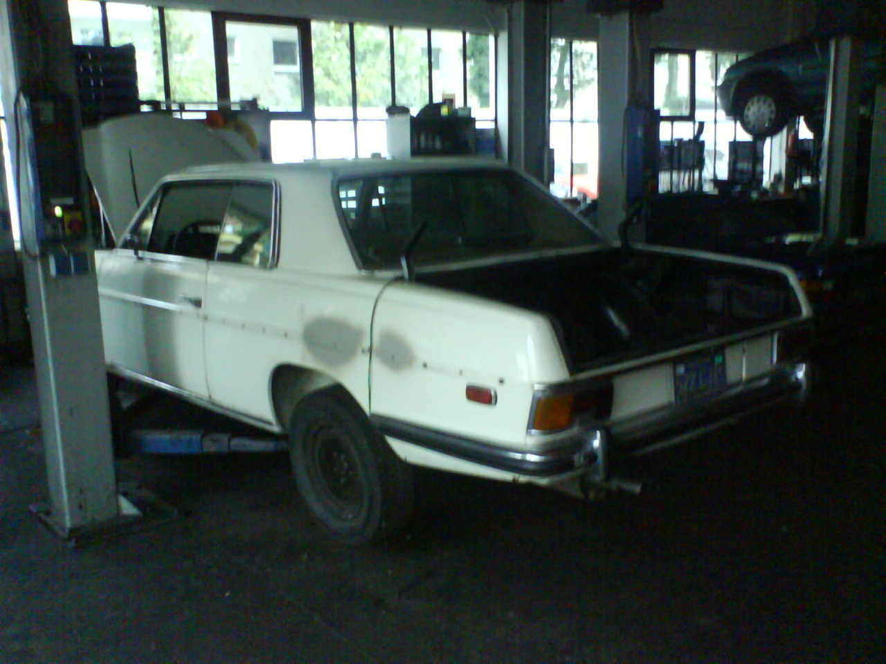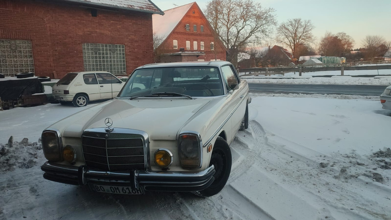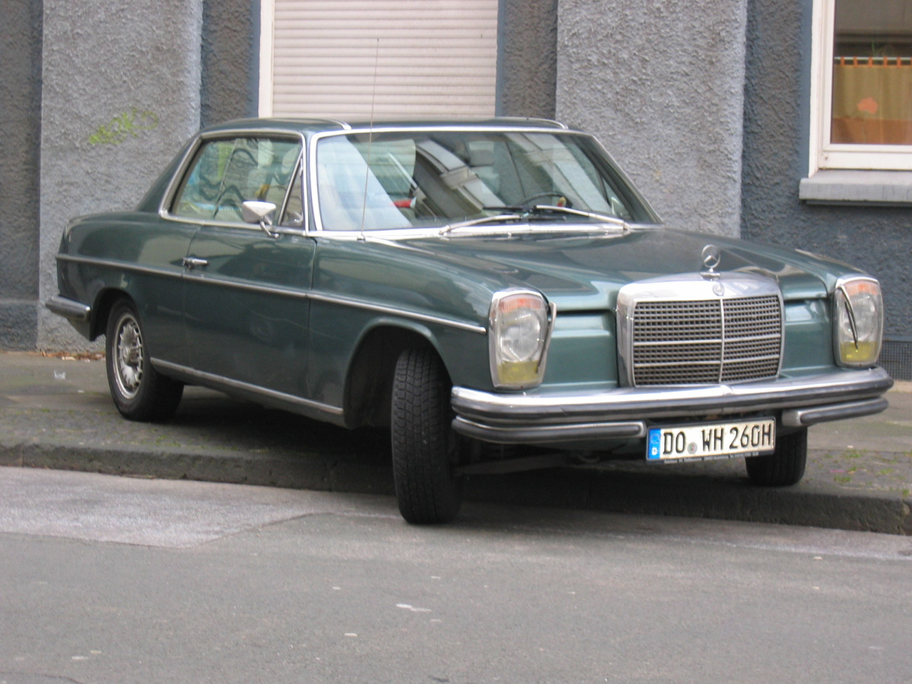 ziemlich schnell war klar: es soll ein mercedes sein, und natürlich ein diesel, ich bin ja sparsam. und ein h-kennzeichen sollte er haben, für die teuren dieselsteuern war ich zu geizig. also kamen heckflosse oder /8 in frage, die wahl viel dann auf ein strich 8 - diesel - coupe, völlig ohne ahnung irgendwo in norddeutschland im winter gekauft. aber geglänzt hat er schön: