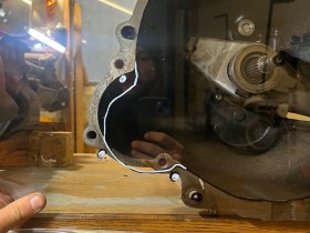4. Getriebeform ist auch leicht anders, also der Anlasser ist beim "RS2000" Getriebe etwas tiefer angebracht. Vermutlich wegen grösserer Schwungscheibe? . Anbei ein Foto wo ich den Umriss auf ner Plexiglasplatte aufgezeichnet habe