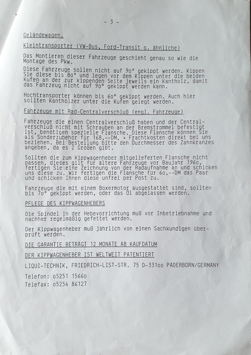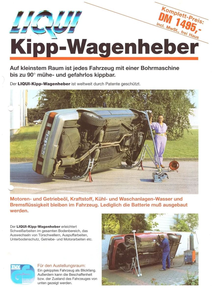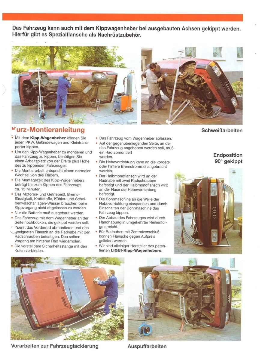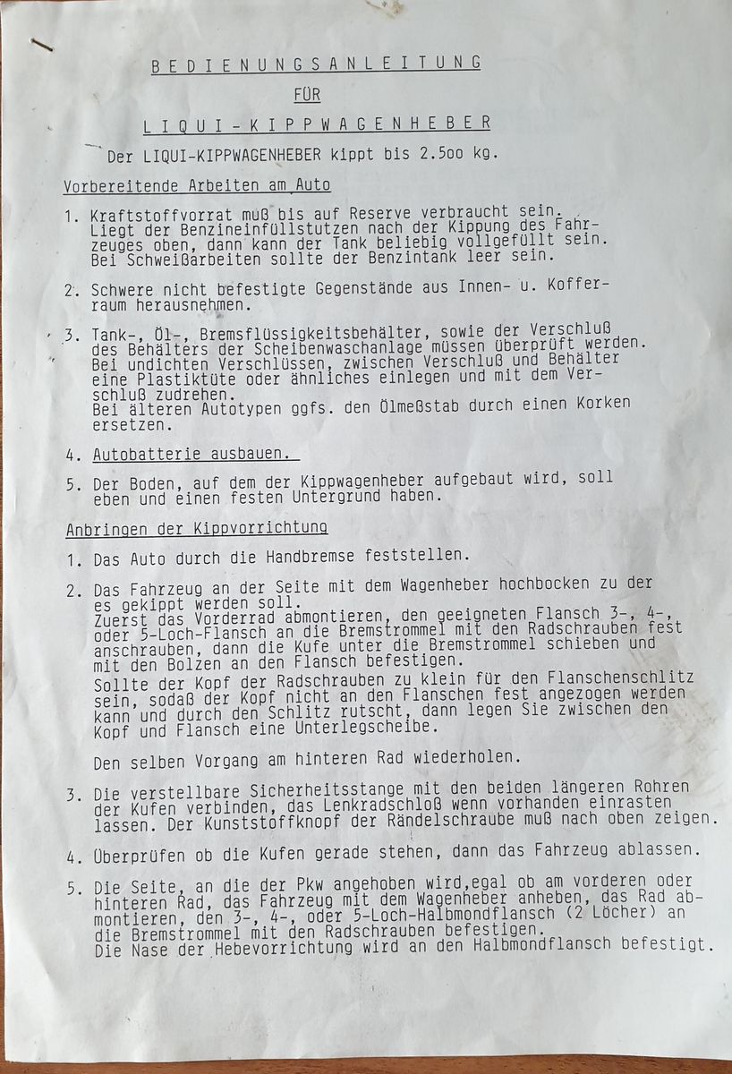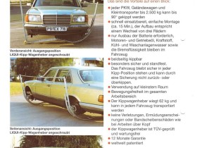 Biete einen Kippwagenheber der Firma Liqui ....funktioniert einwandfrei---alle Adapter für unterschiedliche Lochkreise dabei...gibt etliche Videos dazu bei YouTube